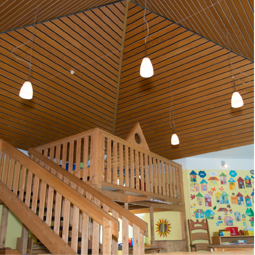 Weiterhin besitzt die Einrichtung eine Bewegungsbaustelle, die an den Gruppenraum grenzt, eine Küche, ein Büro, zwei Abstellräume, eine Erwachsenentoilette und einen Heizungsraum.