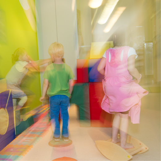 In unserer Einrichtung haben Bewegung und Sport einen hohen Stellenwert, da Kinder sich und ihre Welt vor allem über Bewegung erschließen. Deshalb gehen wir zweimal wöchentlich zur Bewegungsbaustelle ins Pfarrzentrum, dienstags in den Wald und haben einen weitläufigen Flur mit Softbausteinen und Kleinmaterial zum Bauen und Balancieren. Auf unserem Hof können die Kinder mit unterschiedlichen Fahrzeugen fahren, klettern, auf einer Slackline balancieren und in der geselligen großen Nestschaukel schwingen.